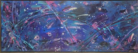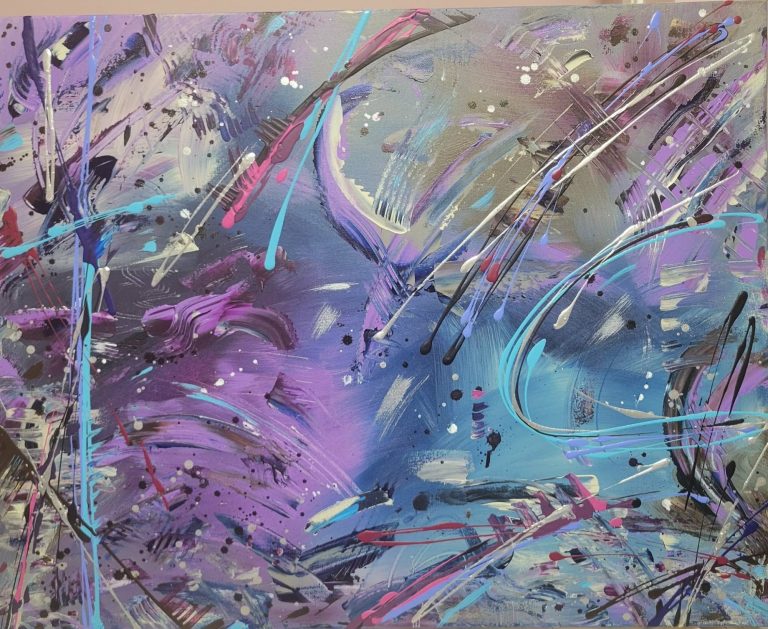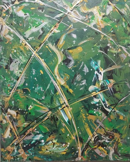 Je choisis des couleurs, je les mélange, je les étire avec pinceaux, spatules et tout ce qui se trouve à portée de main. J’explore, j’essaie, je me laisse surprendre.