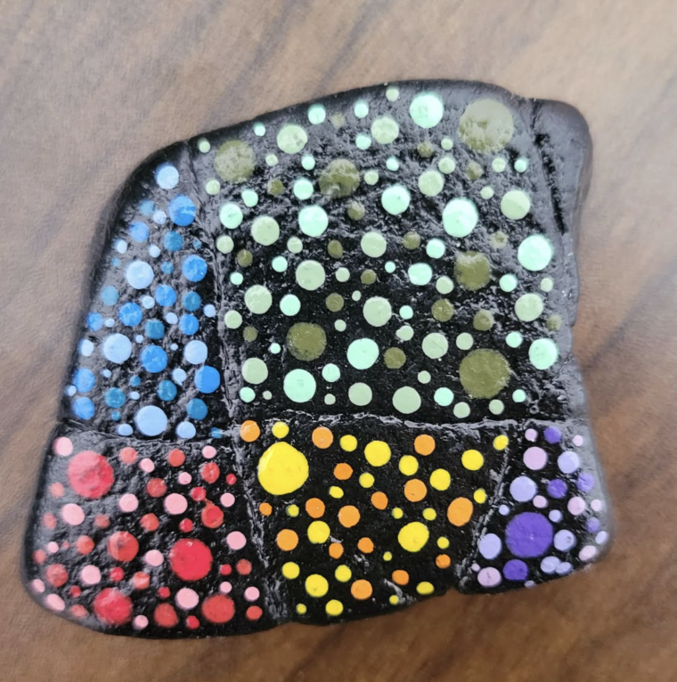 Je me promène sur la place à Rivière-Ouelle et je cherche des pierres qui pourraient offrir l'occasion de mettre en valeur ces points.